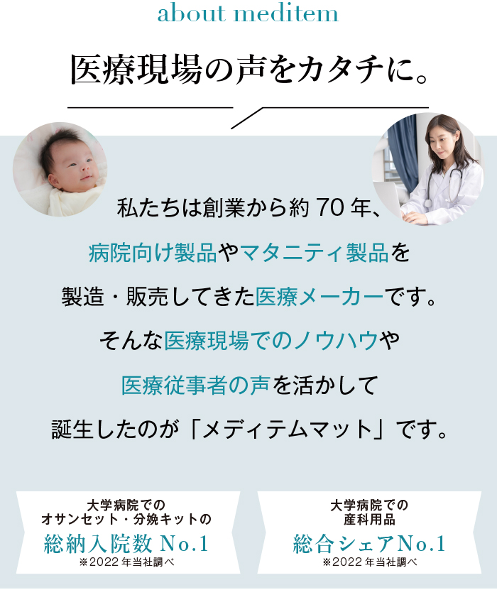- 大学病院でのオサンセット・分娩キットの総納入院数No.1